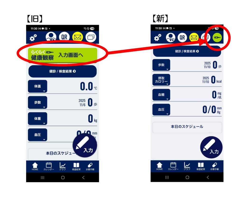 2026年2月1日(日)より、健康日記アプリ内でのらくらく健康観察の入力表示を添付画像のとおりへと変更いたします。