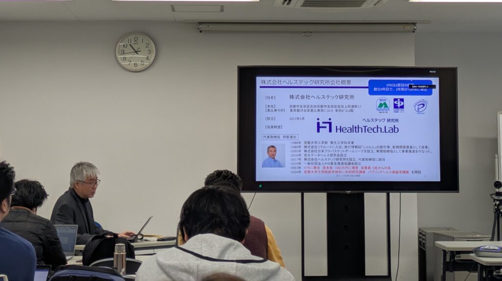 2026年1月8日(木)、京都大学医学研究科 社会健康医学系専攻科目で開講された「健康・予防医療学領域の実装科学」科目にて、弊社代表の阿部が講義を行いました。