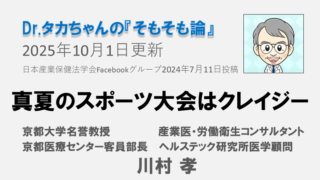 川村孝先生の日本産業保健法学会Facebookグループへの2024年7月11日の投稿のアーカイブです。 真夏のスポーツ大会240711