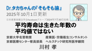 川村孝先生の日本産業保健法学会Facebookグループへの2024年7月30日の投稿のアーカイブです。 平均寿命は生きた年数の平均値ではない240730