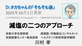 川村孝先生の日本産業保健法学会Facebookグループへの2024年8月19日の投稿のアーカイブです。 減塩の二つのアプローチ240819