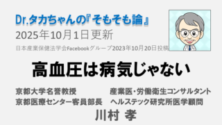 川村孝先生の日本産業保健法学会Facebookグループへの2023年10月20日の投稿のアーカイブです。 高血圧は病気じゃない231020