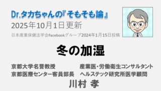 川村孝先生の日本産業保健法学会Facebookグループへの2024年1月15日の投稿のアーカイブです。 冬の加湿240115