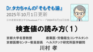 川村孝先生の日本産業保健法学会Facebookグループへの2024年4月3日の投稿のアーカイブです。 検査値の読み方(2)240403