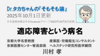 川村孝先生の日本産業保健法学会Facebookグループへの2023年9月27日の投稿のアーカイブです。 適応障害という病名231004